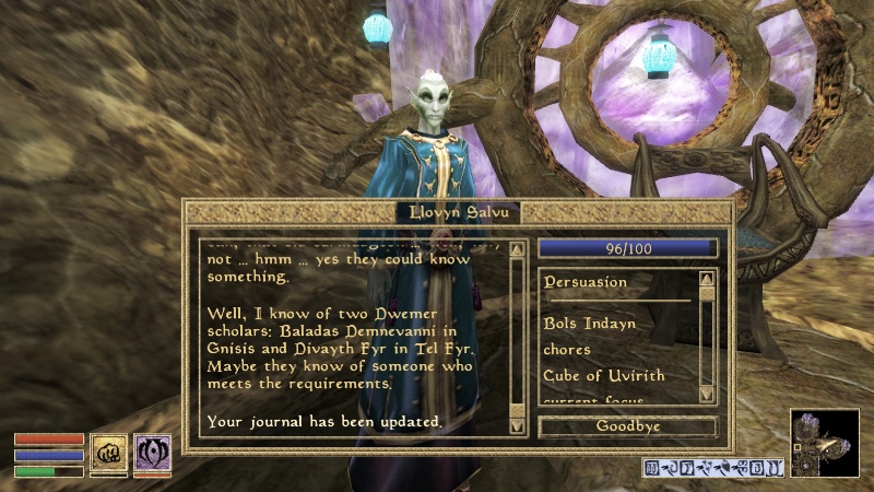 なおRoHT開始時のクエで出てくるゴスレンさんの元代理人はその時宣言していた通りエドウィンナさんのとこに来てるみたいだが、もうそっちとよろしくやってアニムンクリ研究の第1人者かつアルドメリとドワメリを読みこなす最強学者のバラダスさんには近づかないでもらいたいものだ
