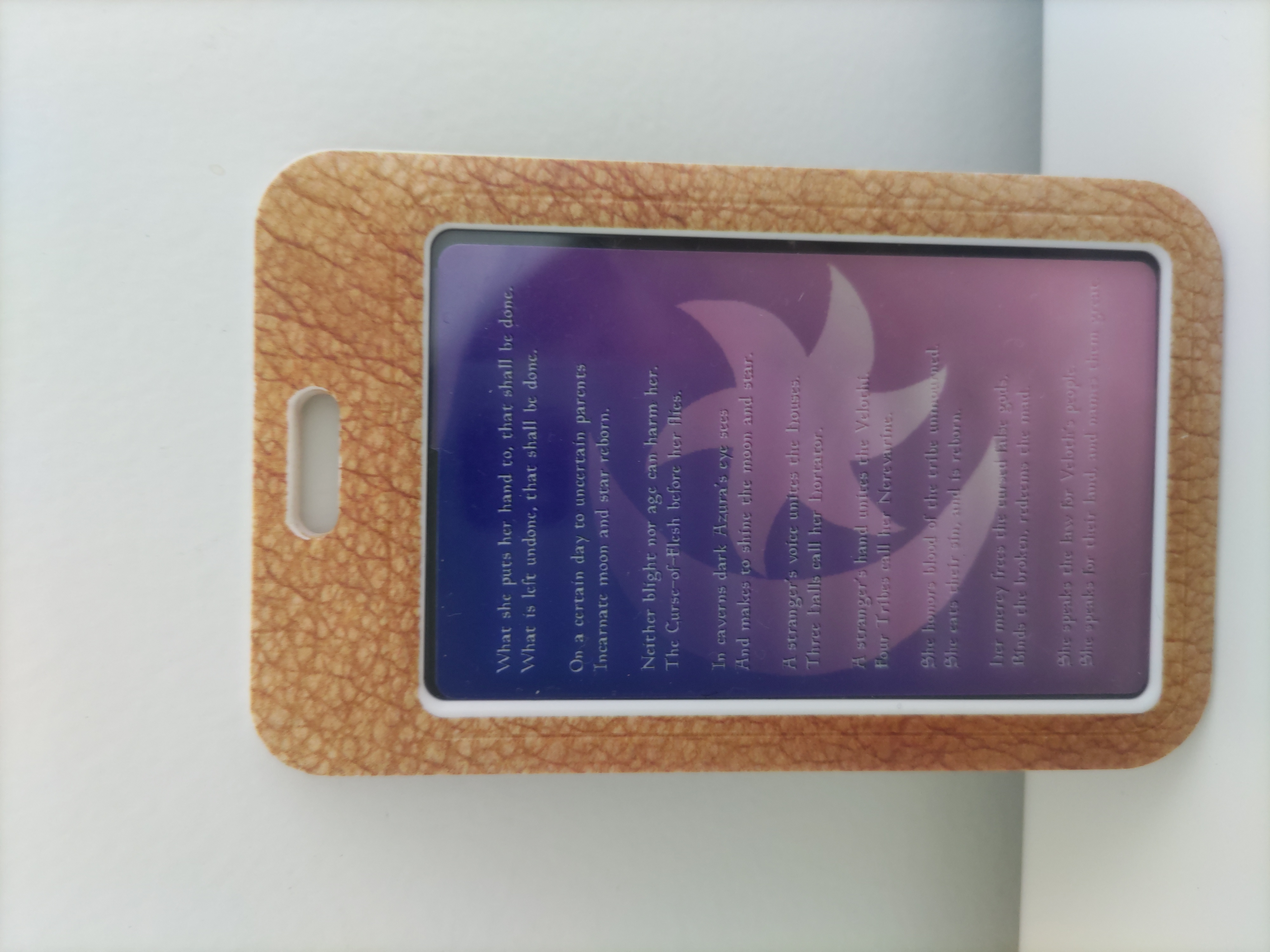 なので当初はバラダスさんとネレ子ちゃんのいちゃらぶイラストでも配置しようかと思っていたが、日常使いしづらいにも程があるのでモロっぽい火山とかアッシュランダー風のタペストリー的なものを配置し、OP冒頭にも出てくる『The Stranger』の“彼”を“彼女”に書き換えたやつを記載することでMorrowindというゲーム(メインクエ)をテーマにした感じのデザインにしました