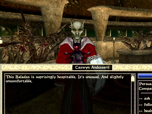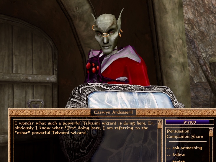 そしてテルヴァンニ(含む全ファクション)のランクが上がっていくとこちらもいろいろコメントしてくれるっぽいが、私は最初からアークマジスターなので「俺より上の奴に言うことはない」と言われる