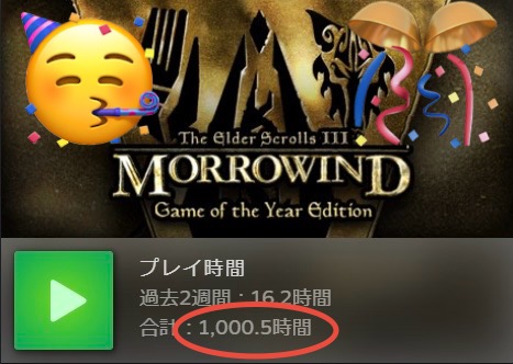 いや実際にはVR分でとっくに1000時間は超えてたけど、正規起動でも大台越えたのは何となく嬉しいよね☺️